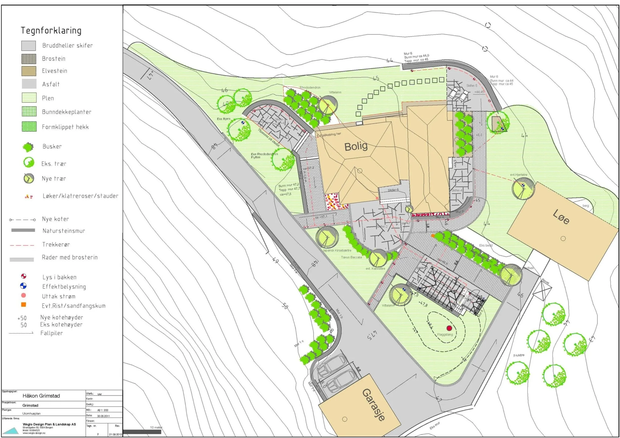 Hageanlegg med adkomstvei, uteplasser og beplanting. Oppfølging i byggeperioden.